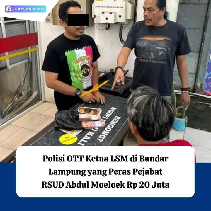 Kabar rakyat. My. Id – Polda Lampung melakukan operasi tangkap tangan (OTT) terhadap seorang Ketua LSM dan anggotanya usai memeras pihak Rumah Sakit Umum Abdul Moeloek Lampung. Polisi mendapatkan barang bukti uang tunai Rp 20 juta.