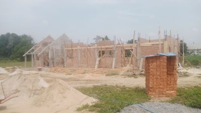Proyek pembangunan unit gedung baru di kampung panca mulya, kecamatan Banjar baru,kabupaten Tulang bawang,propinsi Lampung, yang mana diduga pekerjaan terpantau asal jadi, Jumat (28/10/2025).